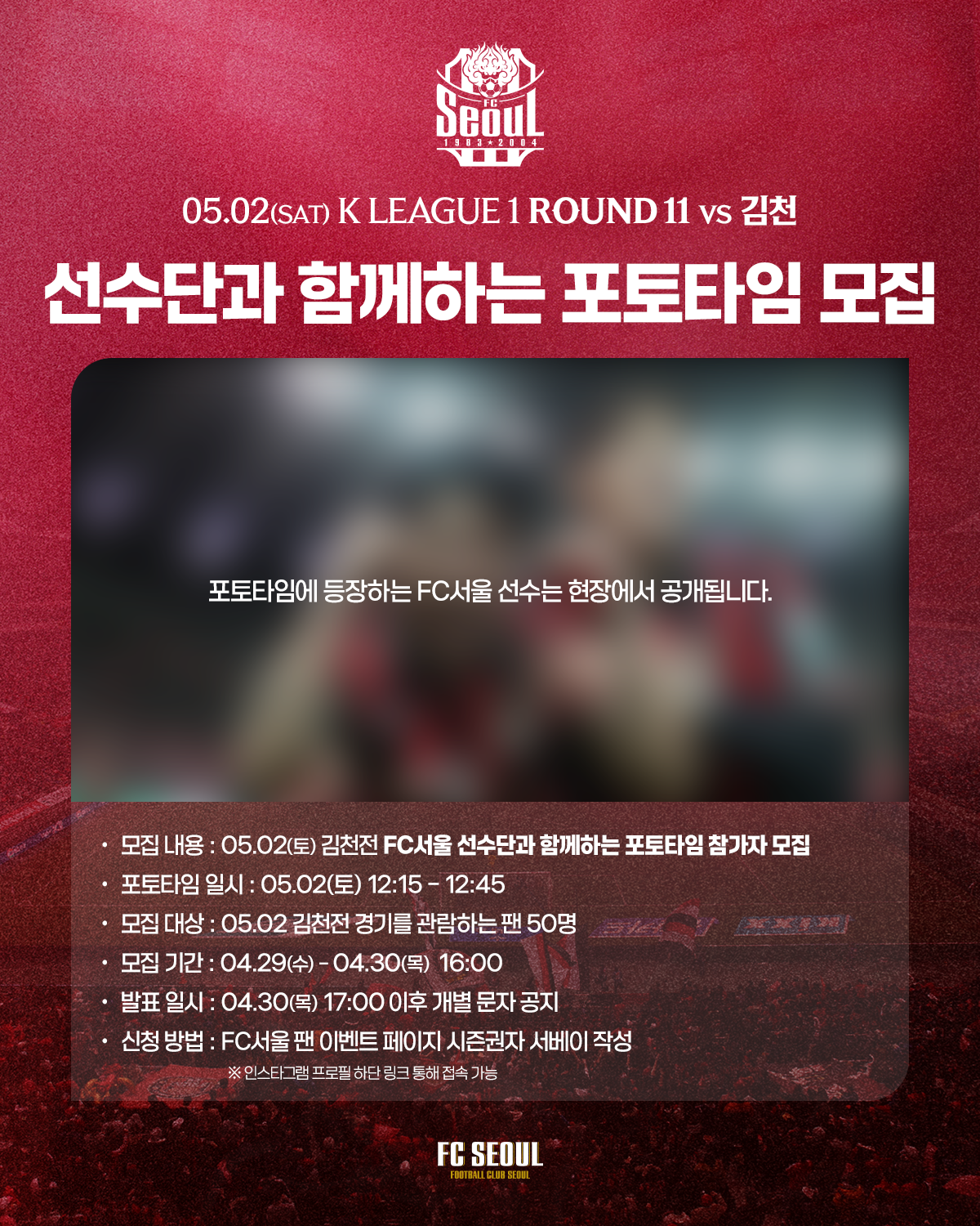 5/2(토) 김천전 'FC서울 선수단과 함께하는 포토타임’ 모집 (전체 팬 대상)